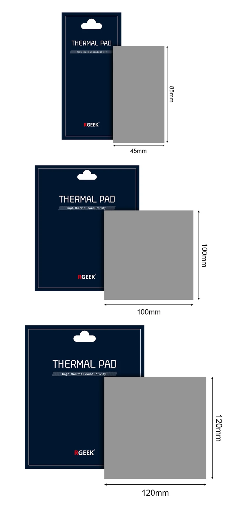After RGEEK launched high-quality thermal grease, it was highly praised.We adopted new technology to make it easy for all players to use our thermal pad. This Rgeek thermal pad is rated voltage up to 9.8KV and has a thermal conductivity of 12.8 W/mk and insulation. It is safe to use without electricity. This thermal pad is very versatile and easy to use. Example: Notebook computers, Graphics Cards, DRAM memory modules, communication devices, SSD solid state hard drives, car control devices and game equipments, etc.