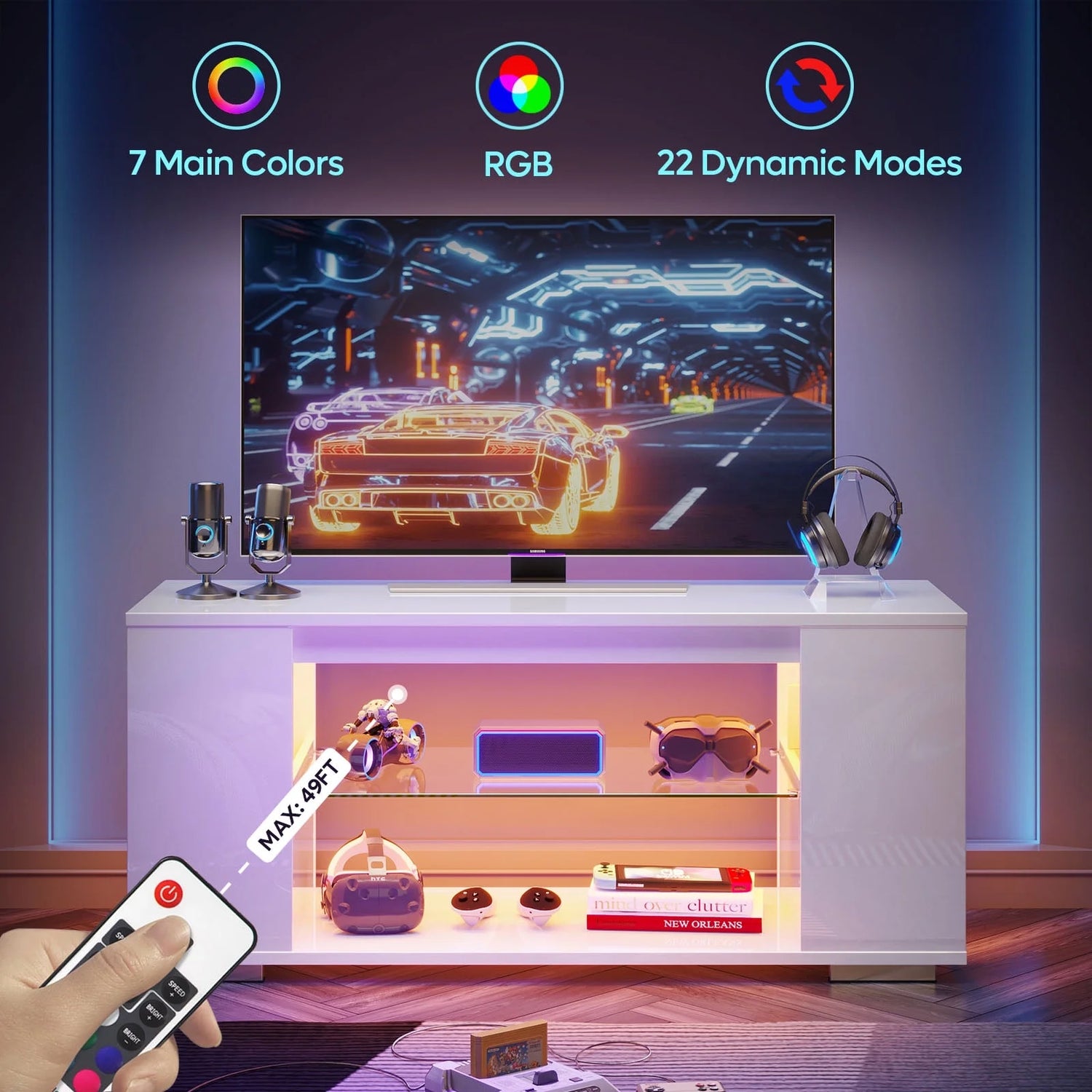 47'' TV Stand for Tvs up to 55", Gaming Entertainment Center with LED Lights, White - 47 Inch / White is backordered and will ship as soon as it is back in stock.