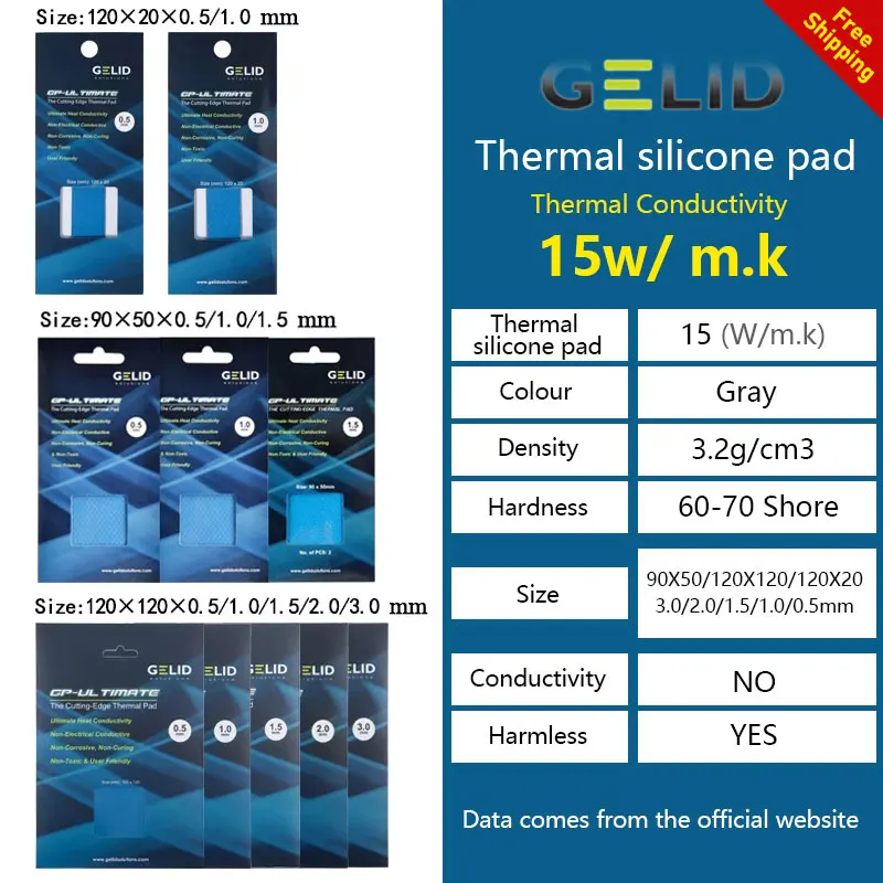 GELID Solutions Gp-Ultimate 15W/MK Thermal Pad CPU/GPU Graphics Motherboard Silicone Grease Pad Heat Dissipation Silicone Pad