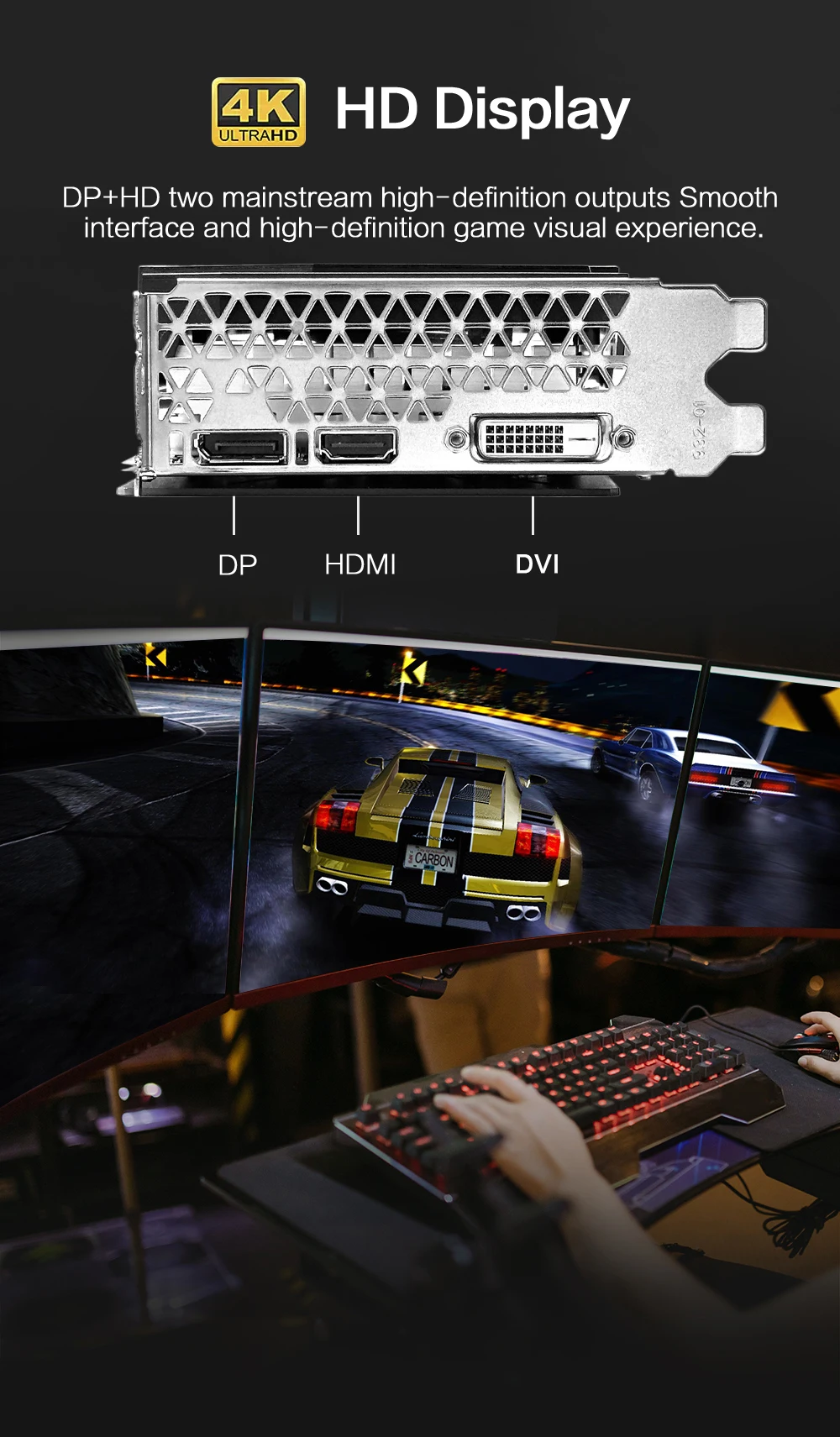 DP+HD two mainstream high-definition outputs Smoothinterface and high-definition game visual experience.