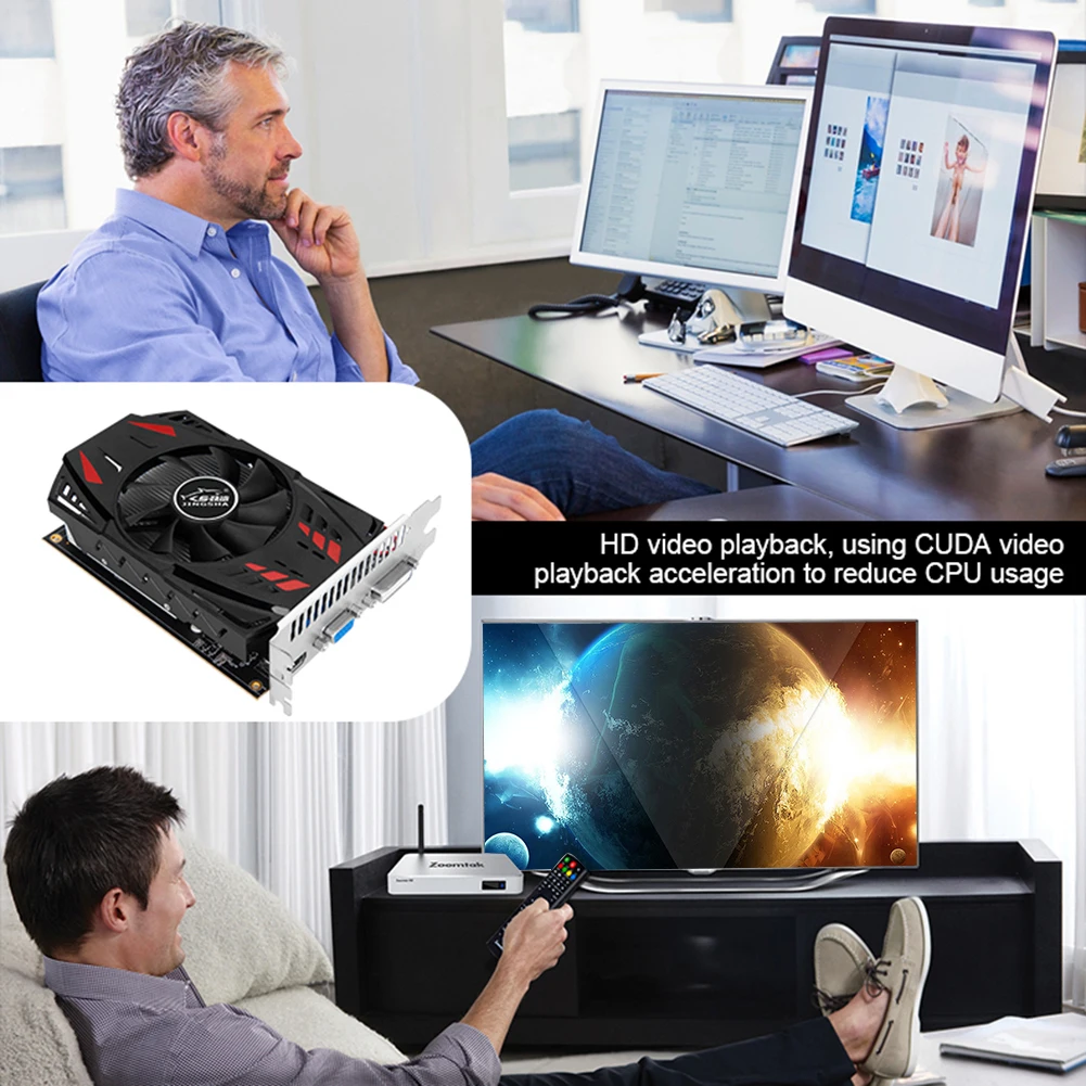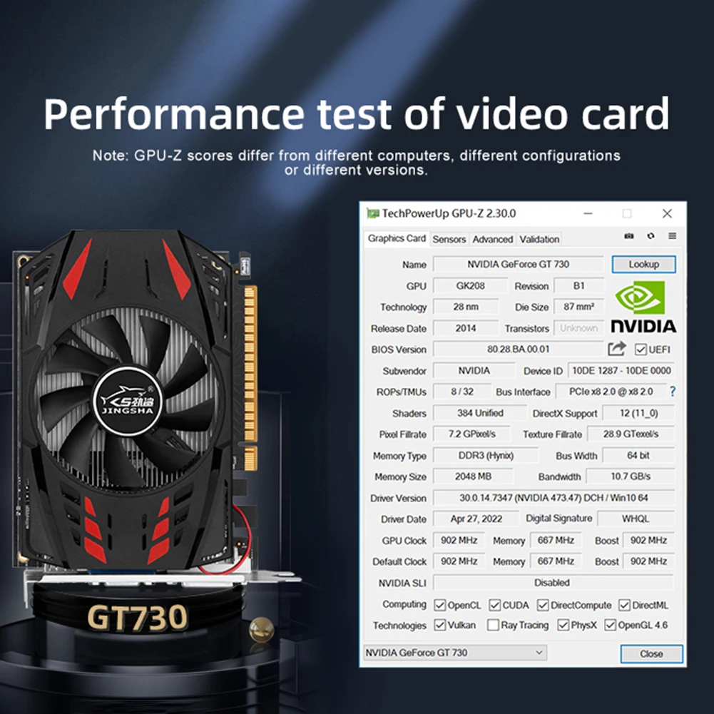 GT730 Gaming Video Card Automatic Cooling Fan 2GB Computer Graphics Card 902MHZ DDR3 HD Interface Replacement for Office Gaming Feature: 1. Graphics Card: High definition interface, self cooling, fast response. 2. Fan: Silent cooling, silent cooling fan, plus high-quality aluminum alloy to ensure excellent heat dissipation. 3. HD Video Playback: CUDA video playback is used to accelerate CPU utilization and achieve both office and entertainment. 4. Size: The size of the graphics card is about 165x125x40mm/6.49x5.70x1.57inch. 5. Satisfaction Guarantee: We strive to provide each customer with the highest standard of customer service to ensure you have a pleasant shopping experience. If you have any issues, inquiries or need assistance, please feel free to contact us directly. Specification: Origin: Mainland China Production process: 28NM Video memory bandwidth: 10.7GB/S Graphics card interface: PCIE X8 2.0 Core frequency: 902MHZ Video memory capacity: 2048MB Video memory width: 64Bit Display memory type: DDR3 Display interface: VGA+HD+DVI Memory frequency: 667Mhz Size: About 165x125x40mm/6.49x4.92x1.57inch Tips: Performance testing of graphics cards scores differently on different computers, configurations, and versions. Data is for reference only Note: 1 x Graphics Card |